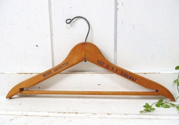 【MOTEL HAMILTON】USA!プリント入り・アンティーク・木製ハンガー