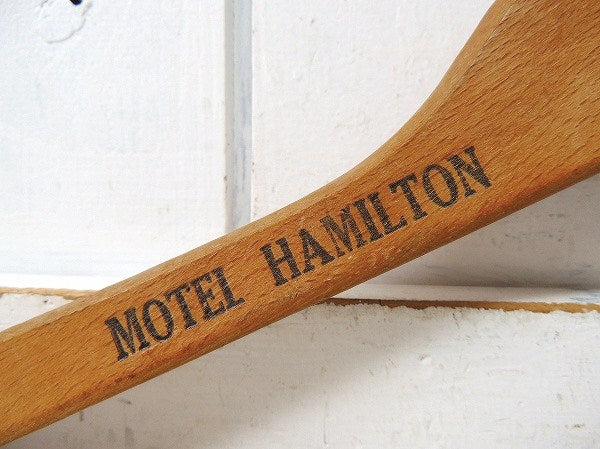 アメリカで見つけました・・『MOTEL HAMILTON』の文字入りアンティーク・木製ハンガーです。