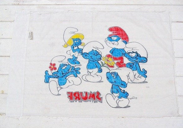 アメリカで見つけました・・ベルギーで誕生したヨーロッパの森に住む小さな妖精のキャラクター『スマーフ(SMURF)』のヴィンテージ・USEDピロケース(片面)です。