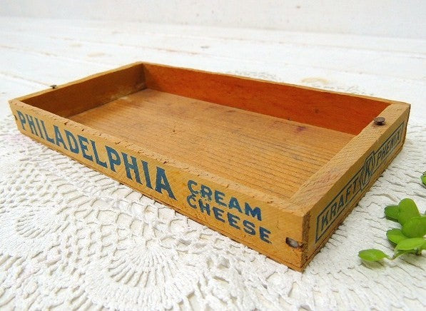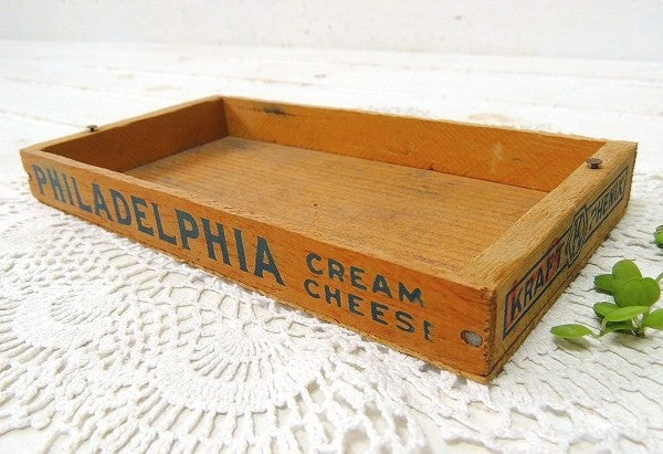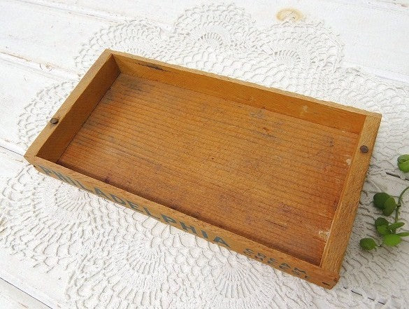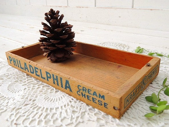 アメリカで見つけました・・『フィラデルフィア・クリームチーズ』の木製・ヴィンテージ・チーズボックスです。
