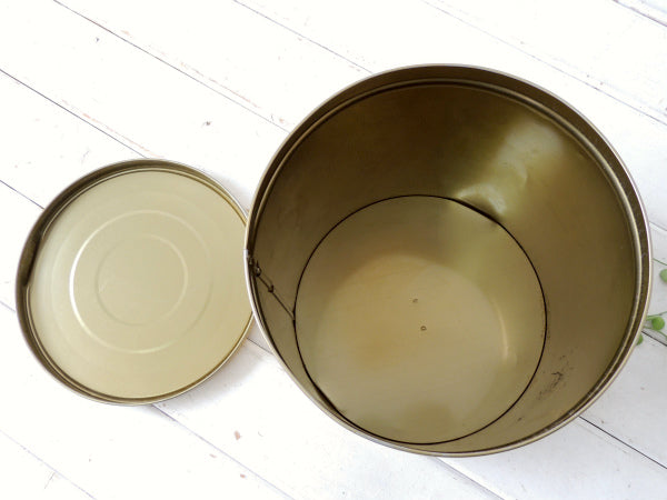 ポテトチップスが入っていた缶で、両面&蓋にロゴや文字のプリントが入った可愛いパッケージです。