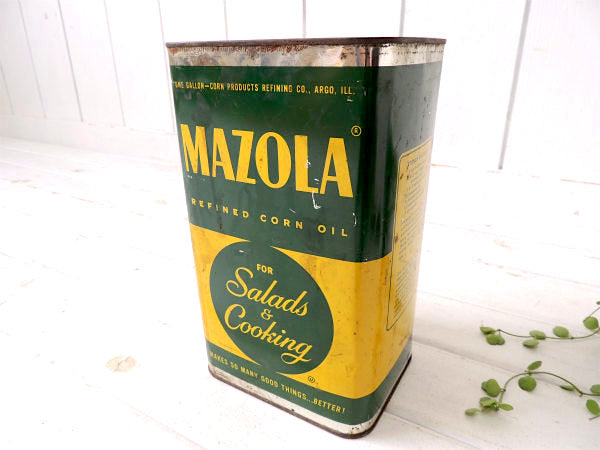 アメリカで見つけました・・『MAZOLA/REFINED CORN OIL』のヴィンテージ・ティン缶です。