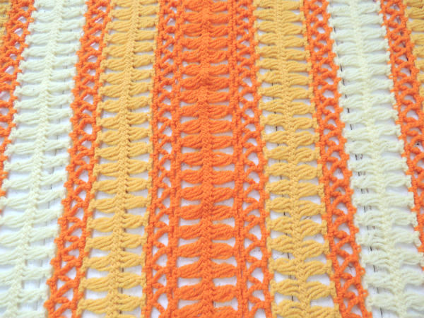 アメリカで見つけました・・フリンジ付きのヴィンテージ・ニットブランケットです。