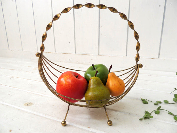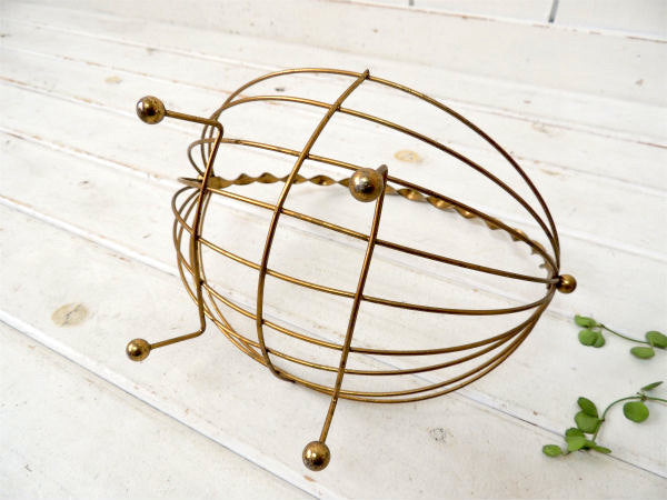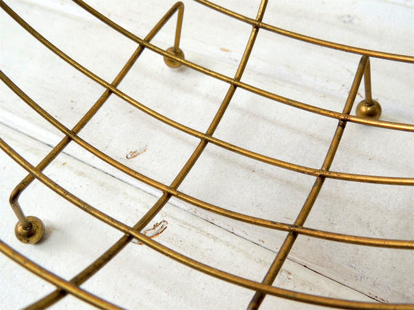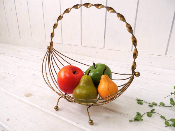 USA!ゴールド色のメタル製・脚付きヴィンテージ・バスケット/フルーツバスケット