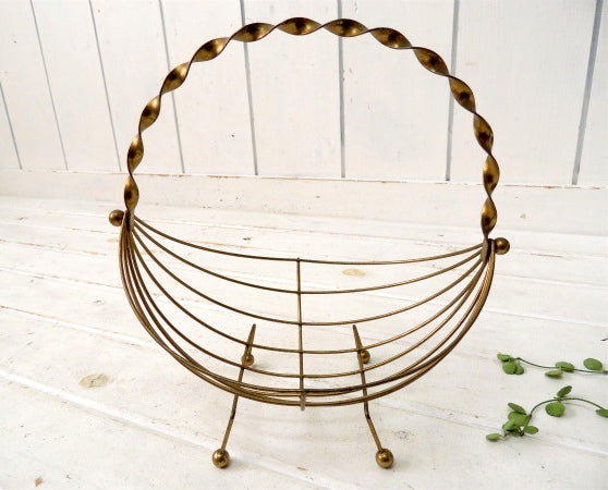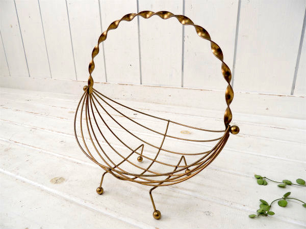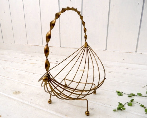 アメリカで見つけました・・ゴールド色のメタル製・脚付き・ヴィンテージ・バスケットです。