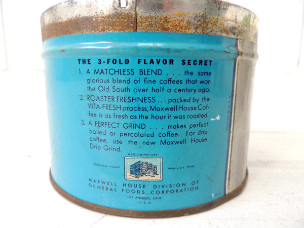 アメリカで見つけました・・アメリカの老舗コーヒーブランド『MAXWELL HOUSE Coffee(マックスウェルハウスコーヒー)』FRESHのヴィンテージ・ティン缶です。