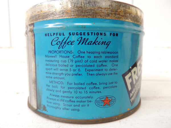 【MAXWELL HOUSE Coffee/FRESH】ブリキ製・ヴィンテージ・コーヒー缶/ティン缶