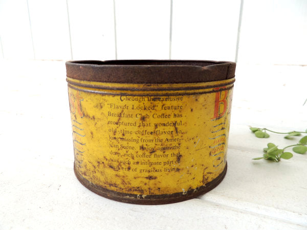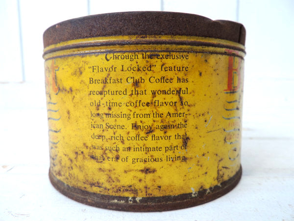 アメリカで見つけました・・アメリカの老舗コーヒーブランド『Breakfast Club COFFEE(ブレックファストクラブコーヒー)』FLAVOR /LOCKEDのヴィンテージ・ジャンクなティン缶です。