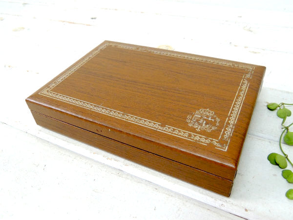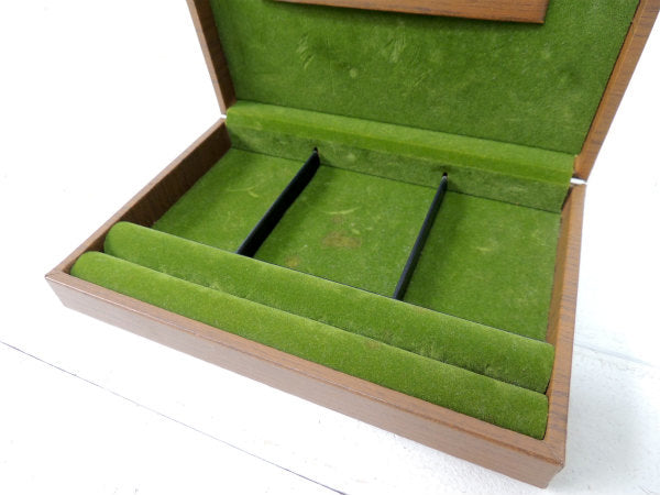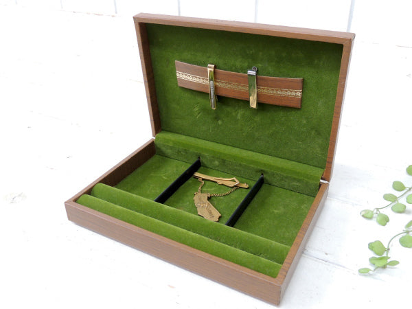 アメリカで見つけました・・SWANK:スワンク ウッド柄とグリーンのセンス光る小さなアンティーク・ジュエリーボックス(宝石箱)です。
