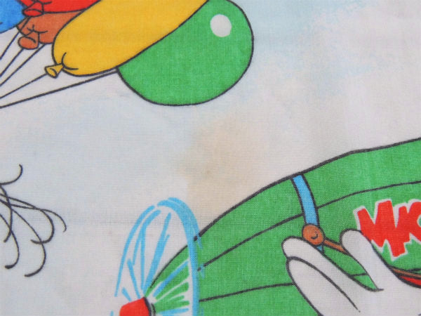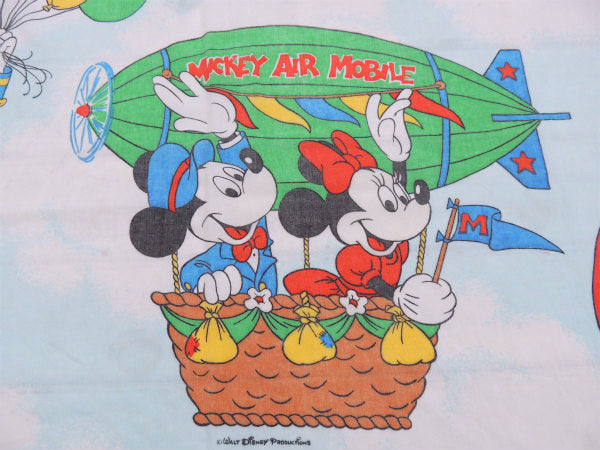 アメリカで見つけました・・ウォルトディズニー『ミッキー&フレンズ』の飛行船柄・ヴィンテージ・USEDフラットシーツです。(ダブルサイズ)