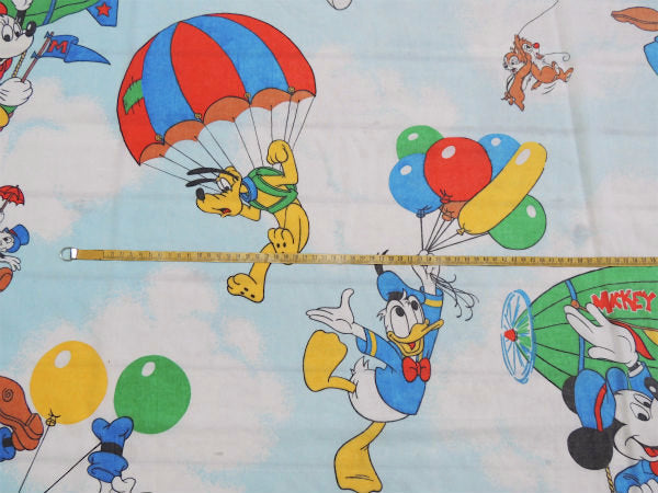 【ミッキー&フレンズ】飛行船柄・ダブルサイズ・ヴィンテージ・ユーズドシーツ(フラットタイプ)