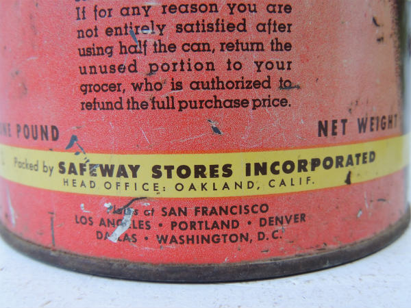 アメリカ西海岸を拠点としチェーン展開しているスーパーマーケット・チェーン『SAFEWAY(セーフウェイ)』のオリジナル・ブランド【EDWARDS COFFEE】ヴィンテージ・コーヒー缶です。