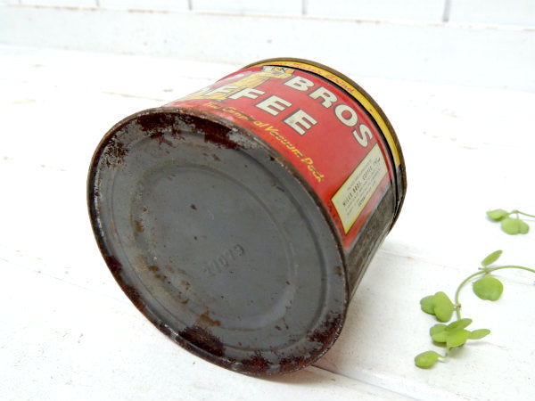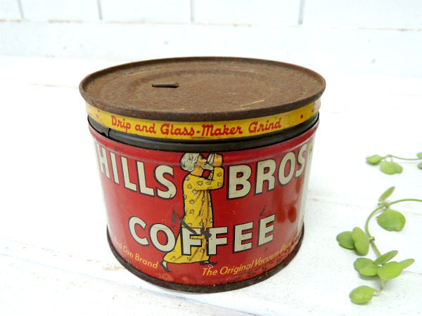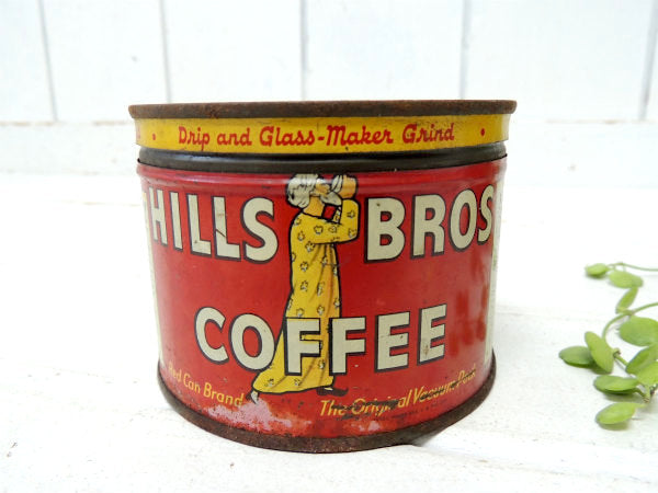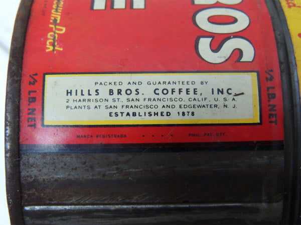 アメリカで見つけました・・1878年にアメリカ・サンフランシスコで誕生した老舗コーヒーブランド『HILLS BROS COFFEE(ヒルスコーヒー缶)』のちいさな・スモールサイズのヴィンテージ・ティン缶(蓋付き)です。