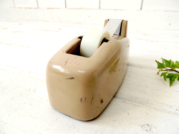 アメリカで見つけました・・工業系の雰囲気漂うメタル製の小さなヴィンテージ・Scotch DESK DISPENSER テープカッター(ベージュカラー)です。MODEL C-20