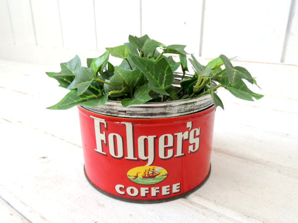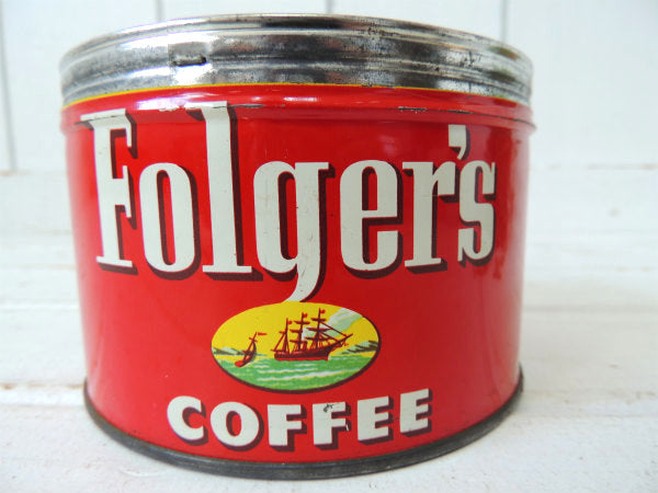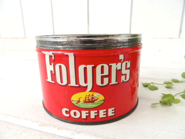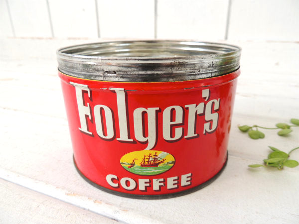 【1952's/フォルジャーズ】赤色・ブリキ製・ヴィンテージ・コーヒー缶/ティン缶 USA