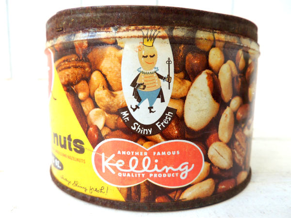 【キャラクター/Mr.Shiny Fresh/mixed nuts】ブリキ製・ヴィンテージ・ナッツ缶