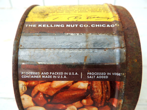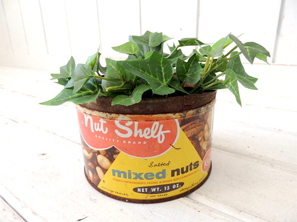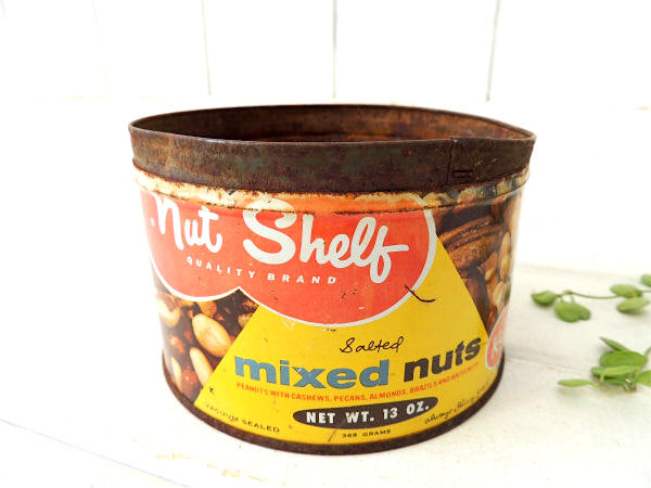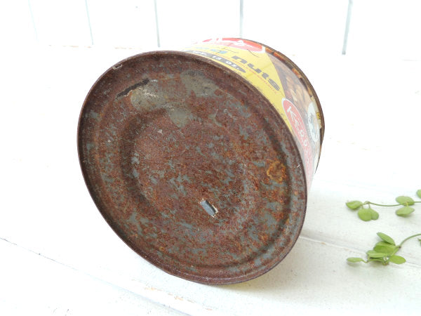 アメリカで見つけました・・キャラクターのロゴが可愛い『Mr.Shiny Fresh/mixed nuts』のブリキ製・ヴィンテージ・ミックスナッツ缶です。