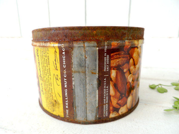 ミックスナッツが入っていたブリキ缶で、中はサビサビ・ジャンク品・パッケージはキュートです。