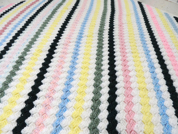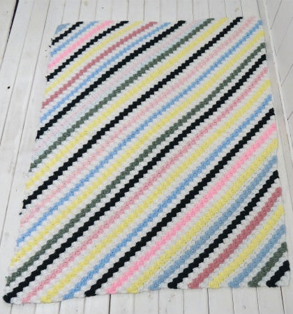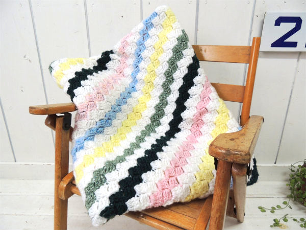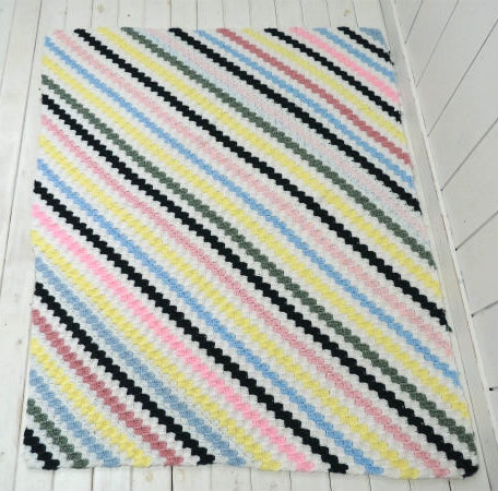 USA 斜めストライプ柄 ハンドメイド・ヴィンテージ・ニットブランケット ひざ掛け