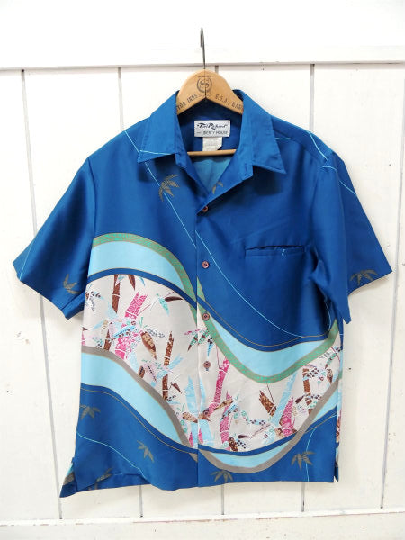 ハワイ・オアフ島で見つけました。今はなきHawaiiの百貨店『リバティ・ハウス×Tori Richard トリ・リチャード社』による和柄(竹・バンブー柄)のヴィンテージ・アロハシャツ   経年による多少のスリキズ・ホコリ等ございます。 シェラトン・木製・アンティークハンガーは付いておりません。 画像(写真)でのご判断を宜しくお願い致します。 大きなダメージはありませんが、USED:古着になりますので ご理解頂ける方のみご購入下さい。 ■Tori Richard For LIBERTY HOUSE ■MADE IN USA  ■素材:100% POLYESTEL ■カラー:ブルー ■SIZE :アロハシャツ【SMALL】 平置き実寸サイズ【着丈 約71.5cm】【肩幅 約45.0cm】【身幅 約55.0cm】【袖丈約24.0cm】 ■プラスチックボタン        ■コンディション:★★★★☆ ※アロハシャツ&ハワイアンシャツ (Aloha shirt) とは、1930年代頃〜パイナップルやフラを踊る女性などのトロピカルなモチーフや、金魚、鶴、虎などのオリエンタルなモチーフ(和柄と呼び)を華やかでカラフルな色彩で染め上げた、シルクやレーヨン、ポリエステル、綿などの生地を用いて作られる開襟シャツの事..。 ■レターパックライト¥360対応可(追跡サービスあり・補償なし) ※ご注文の際、お手数ですがメッセージ欄に『レターパックライト希望』とご記入下さい。新たにお見積もりをメールにてお知らせさせていただきます。