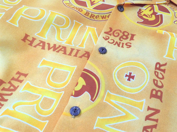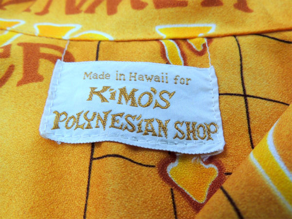 ハワイ・オアフ島で見つけました。1960年代頃〜”Made in Hawaii for Kimo's POLYNESIAN SHOP”PRIMO柄(プリモ・SINCE1897・ISLAND BReWeD・HAWAII BeeR・地図)のヴィンテージ・アロハシャツ