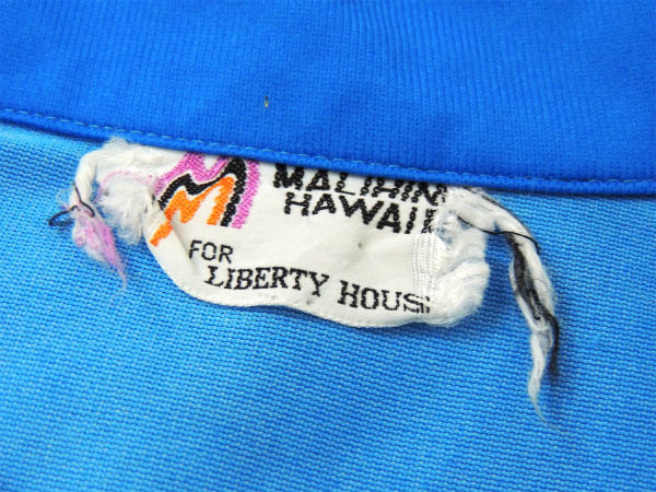 ハワイ・オアフ島で見つけました。1960年代頃〜”MALIHINI HAWAII ・マリヒニハワイ”花柄・ブルーカラーのヴィンテージ・アロハシャツ・柄合わせ   経年による多少の使用感・スリキズ・ホコリ・スレ・タグのイタミ等ございます。 シェラトン・木製・アンティークハンガーは付いておりません。 画像(写真)でのご判断を宜しくお願い致します。 大きなダメージはありませんが、USED:古着になりますので ご理解頂ける方のみご購入下さい。 ■MALIHIN HAWAII FOR LIBERTY HOUSE ■MADE IN   ■素材:表記なし ■カラー:ブルー ■SIZE :アロハシャツ【表記なし】 平置き実寸サイズ【着丈 約64.0cm】【肩幅 約47.5cm】【身幅 約47.0cm】【袖丈約25.0cm】 ■生地ボタン        ■コンディション:★★★☆☆ ※アロハシャツ&ハワイアンシャツ (Aloha shirt) とは、1930年代頃〜パイナップルやフラを踊る女性などのトロピカルなモチーフや、金魚、鶴、虎などのオリエンタルなモチーフ(和柄と呼び)を華やかでカラフルな色彩で染め上げた、シルクやレーヨン、ポリエステル、綿などの生地を用いて作られる開襟シャツの事..。 ■レターパックライト¥360対応可(追跡サービスあり・補償なし) ※ご注文の際、お手数ですがメッセージ欄に『レターパックライト希望』とご記入下さい。新たにお見積もりをメールにてお知らせさせていただきます。