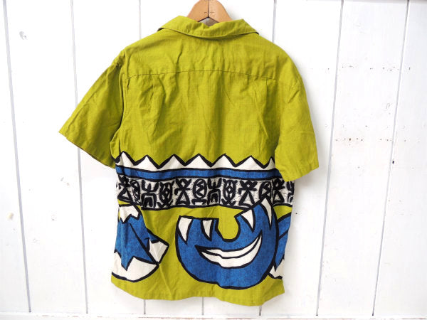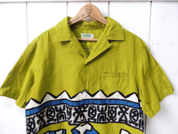 ”MALIHINI HAWAII ・マリヒニハワイ”オリエンタル柄(島・海・大地)・緑色ヴィンテージ・アロハ&ハワイアンシャツ!