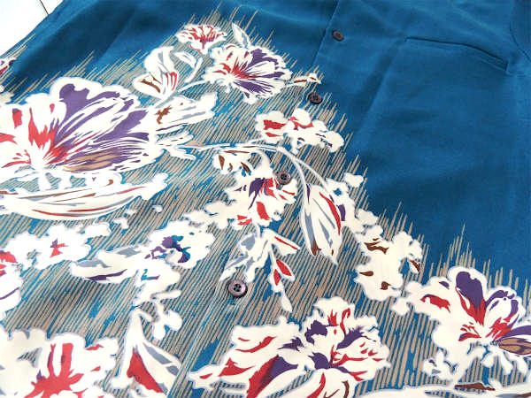 ハワイ・オアフ島で見つけました。”Tori Richard トリ・リチャード社”フラワー・花柄・ヴィンテージ・アロハシャツ・柄合わせ   経年による多少のスリキズ・ホコリ・タグにイタミ等ございます。 シェラトン・木製・アンティークハンガーは付いておりません。 画像(写真)でのご判断を宜しくお願い致します。 大きなダメージはありませんが、USED:古着になりますので ご理解頂ける方のみご購入下さい。 ■Tori Richard ■MADE IN   ■素材:明記なし ■カラー:ブルー&グリーン ■SIZE :アロハシャツ【明記なし】 平置き実寸サイズ【着丈 約71.5cm】【肩幅 約44.0cm】【身幅 約54.0cm】【袖丈約24.0cm】 ■プラスチックボタン        ■コンディション:★★★★☆ ※アロハシャツ&ハワイアンシャツ (Aloha shirt) とは、1930年代頃〜パイナップルやフラを踊る女性などのトロピカルなモチーフや、金魚、鶴、虎などのオリエンタルなモチーフ(和柄と呼び)を華やかでカラフルな色彩で染め上げた、シルクやレーヨン、ポリエステル、綿などの生地を用いて作られる開襟シャツの事..。 ■レターパックライト¥360対応可(追跡サービスあり・補償なし) ※ご注文の際、お手数ですがメッセージ欄に『レターパックライト希望』とご記入下さい。新たにお見積もりをメールにてお知らせさせていただきます。