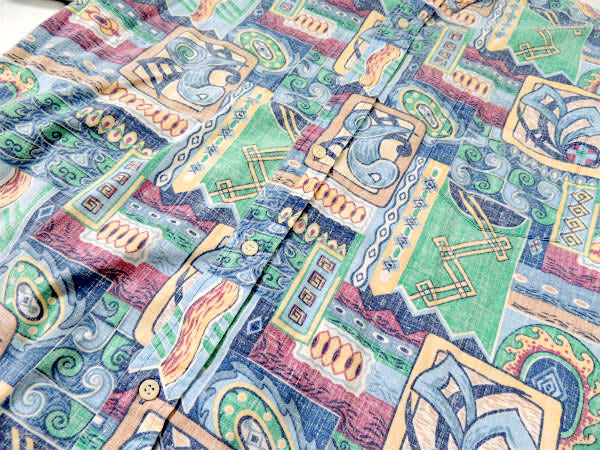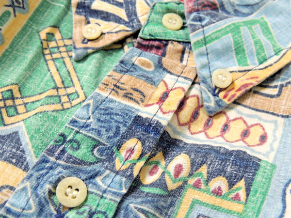 1962年にサーフトランクスで有名なスプーナー社とレインズ社が合併し、“Reyn spooner(レインスプーナー)”というブランドが誕生♪ ハワイ・オアフ島で見つけました。REYNSPOONER”レインスプーナー社”裏生地・ヴィンテージ・アロハシャツ   経年による多少のスリキズ・ホコリ等ございます。 シェラトン・木製・アンティークハンガーは付いておりません。 画像(写真)でのご判断を宜しくお願い致します。 ※リバースプリント(裏地使い)レインスプーナー独自で開発したこの生地は、綿とポリエステル混紡の生地で、とても丈夫で長持ちし、シワになりにくいため、お手入れが簡単な生地でもあります♪ 大きなダメージはありませんが、USED:古着になりますので ご理解頂ける方のみご購入下さい。 ■reyn spooner ■TAILORED IN HAWAII ■素材:60% COTTON 40% POLYESTER ■カラー:裏生地 ■SIZE :アロハシャツ【XL】 平置き実寸サイズ【着丈 約76.0cm】【肩幅 約51.0cm】【身幅 約64.0cm】【袖丈約27.5cm】 ■プラスチックボタン        ■コンディション:★★★★☆ ※アロハシャツ&ハワイアンシャツ (Aloha shirt) とは、1930年代頃〜パイナップルやフラを踊る女性などのトロピカルなモチーフや、金魚、鶴、虎などのオリエンタルなモチーフ(和柄と呼び)を華やかでカラフルな色彩で染め上げた、シルクやレーヨン、ポリエステル、綿などの生地を用いて作られる開襟シャツの事..。 ■レターパックプラス¥510対応可(追跡サービスあり・補償なし) ※ご注文の際、お手数ですがメッセージ欄に『レターパックプラス希望』とご記入下さい。新たにお見積もりをメールにてお知らせさせていただきます。