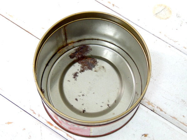 コーヒーが入っていたシャビーなブリキ缶で、赤色ボディにトレードマークのロゴが入っております。