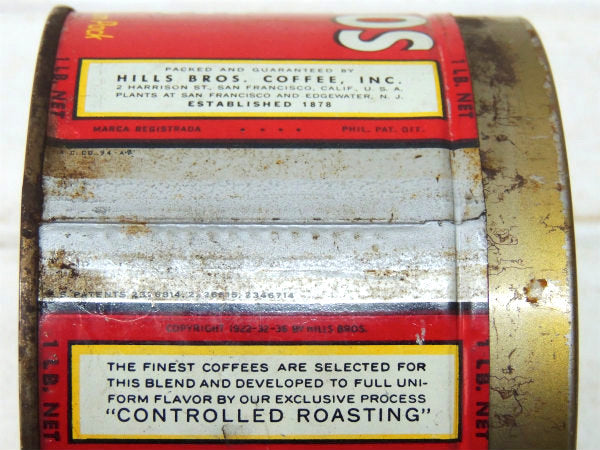 【HILLS BROS】ヒルスコーヒー・ブリキ製・ヴィンテージ・コーヒー缶/ティン缶USA
