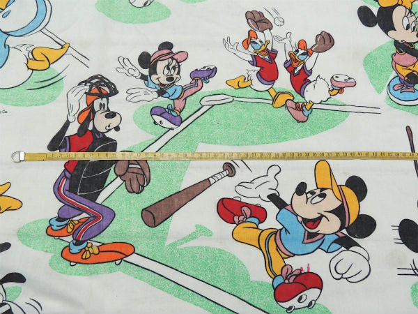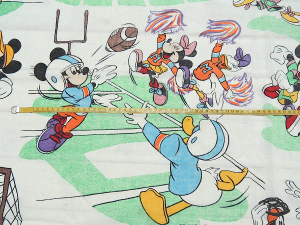 アメリカで見つけました・・ディズニー『ミッキー&フレンズ』のスポーツ柄・ヴィンテージ・USEDフィットシーツです(ツインサイズ)。 ミッキーやミニー・ドナルドダック・グーフィーなどディズニーの人気キャラクターが、サッカーやベースボール・アメフト・バスケットボールなどのスポーツを楽しんでいる総柄プリントです。 キャラクター生地として・・お洋服や小物・バッグのリメイク・ハンドメイドなどに・・♪ MADE IN U.S.A. 多少の使用感・薄いヨゴレ&ペン跡箇所がございます(画像参照)。 日本国内にてお洗濯済みです。 画像(写真)でのご判断を宜しくお願い致します。 ■SIZE :約 W146cm×H220cm    ■コンディション : ★★★☆☆ ■レターパックプラス¥510対応可(追跡サービスあり・補償なし) ※ご注文の際、お手数ですがメッセージ欄に『レターパックプラス希望』とご記入下さい。新たにお見積もりをメールにてお知らせさせていただきます。