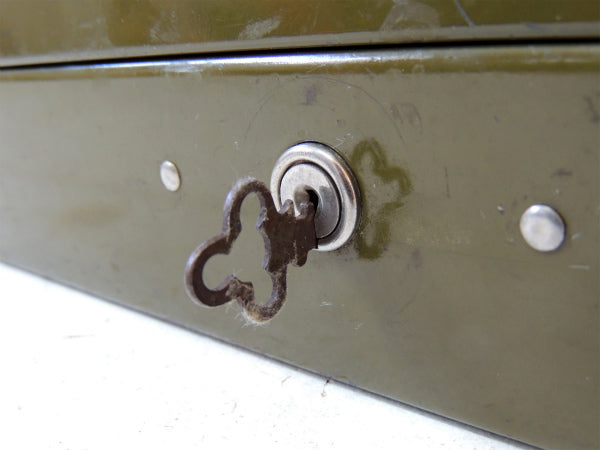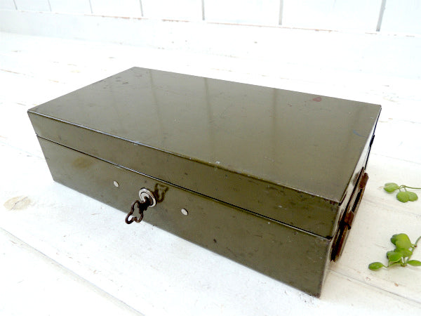 アメリカで見つけました・・鍵付きのメタル製・ヴィンテージ・ケース・(キャッシュボックス・金庫)です。