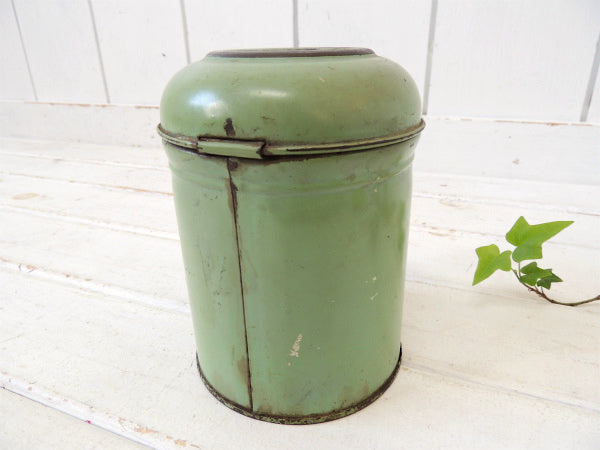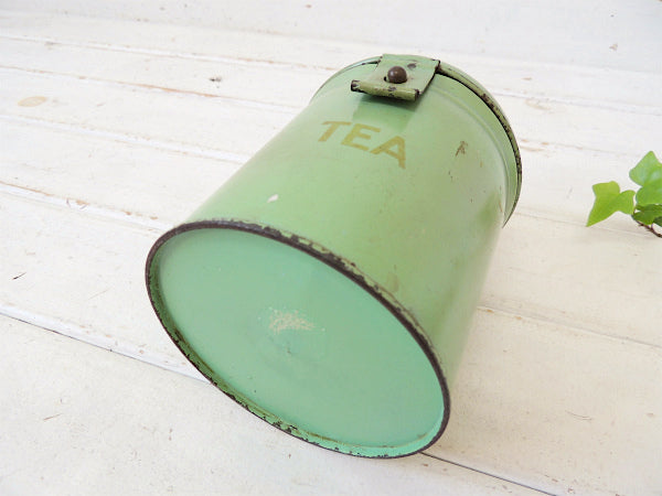 【TEA】ミントグリーン色・ティン製・アンティーク・キャニスター/ティン缶 USA