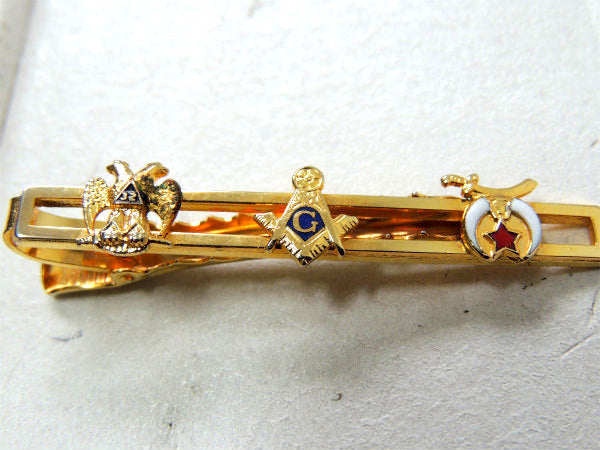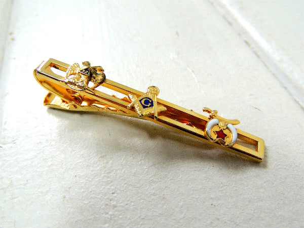 アメリカで見つけました・・・アンティーク''フリーメイソン''32階級モチーフ入り お洒落なデザインのタイピン(タイバー)です。   1930年~50年代頃 ※実際にアメリカで使われていたもの。 もちろんお洒落なネクタイと合わせたり、特別な人へのプレゼントに1点物はいかがですか♪ ネクタイピンは指輪やネックレスと違って、ファッション性と機能性を兼ね備えたアクセサリー♪胸元を飾るものですからデザイン・フォルムはとっても大事になりますが、ネクタイの揺れや乱れを防ぐための お洒落なアイテムの一つ。 多少のスリキズ等ございます。 ヴィンテージネクタイは付属いたしません。 画像(写真)でのご判断を宜しくお願い致します。 ■ゴールド色×装飾 ■size: 約 W6.0㎝(横幅)      ■コンディション : ★★★★☆ ■レターパックライト¥360対応可(追跡サービスあり・補償なし) ※ご注文の際、お手数ですがメッセージ欄に『レターパックライト希望』とご記入下さい。新たにお見積もりをメールにてお知らせさせていただきます。