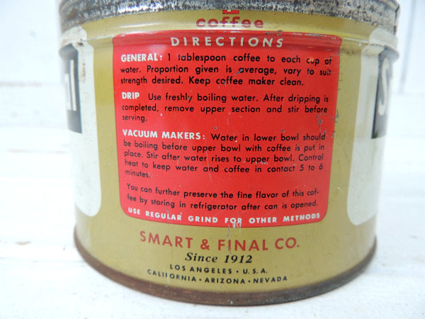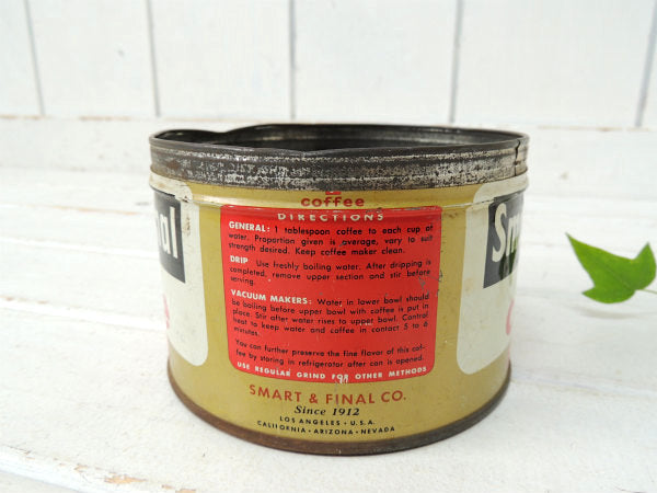 アメリカで見つけました・・カリフォルニアを中心に約250店舗展開している 非会員制の業務用スーパーマーケット『Smart&Final(スマート&ファイナル)』のティン製・ヴィンテージ・コーヒー缶です。