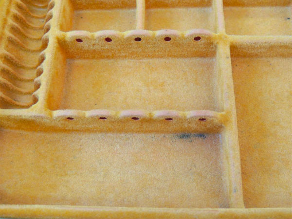 フタ内側はクリーム色のサテン生地で、内側は山吹色のベルベット素材です。