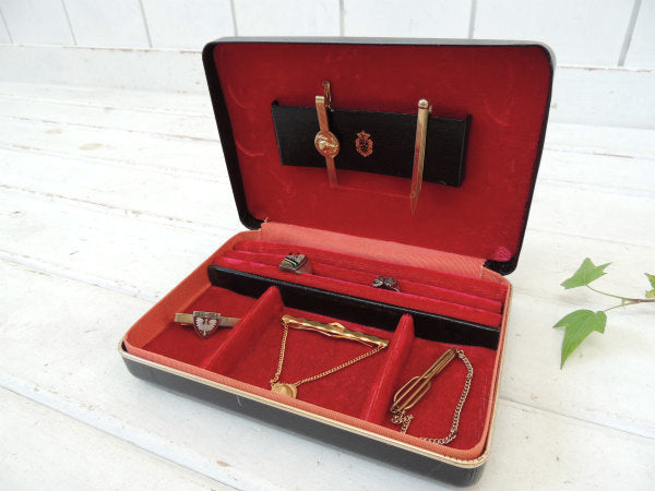 ブラック×レッドカラー メンズ ヴィンテージ・ジュエリーケース 宝石箱 ジュエリーボックス タイピン