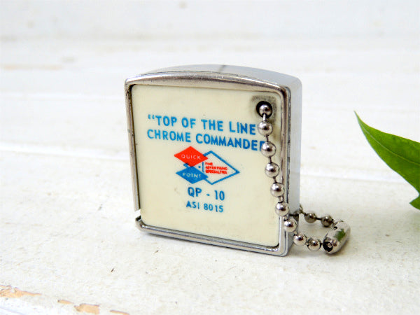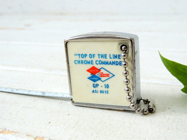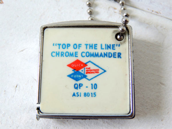 カリフォルニアで見つけました・・キーホルダータイプ『”TOP OF THE LINE” CHROME COMMANDER』のアドバタイジング・ヴィンテージ・メジャーテープ(巻尺)です。ボールチェーン付き