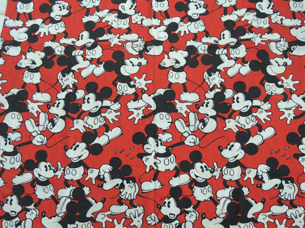【ミッキーマウス】ディズニー・ミッキーマウスの総柄・ヴィンテージ・カーテン生地 USA