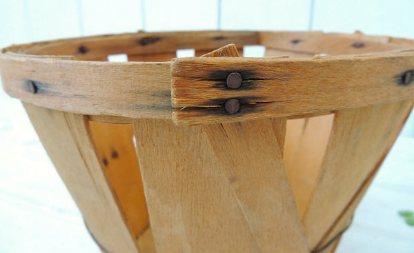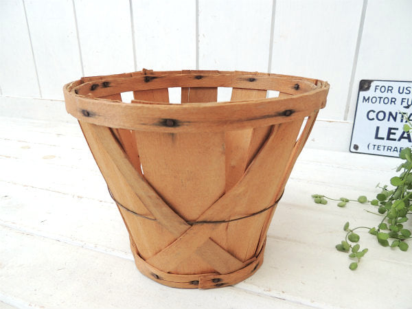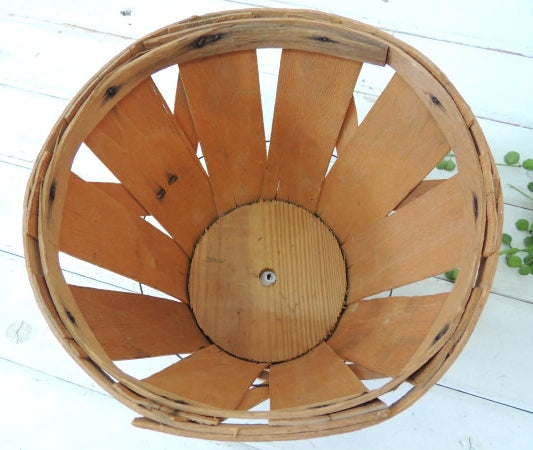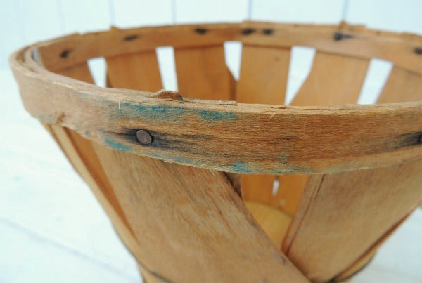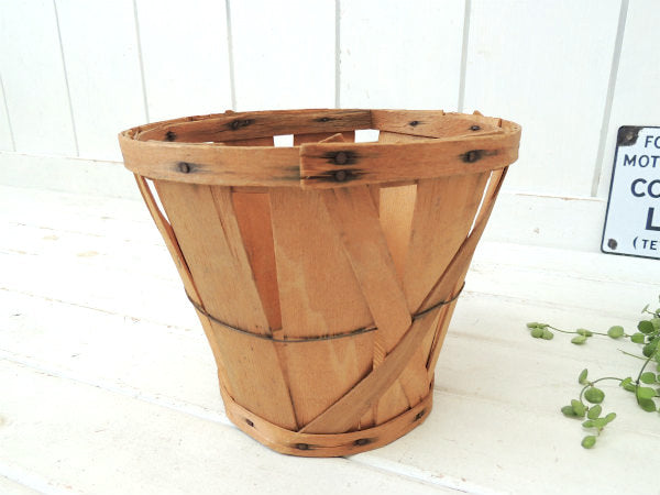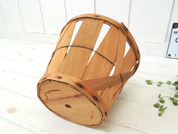 木製・アンティーク・アップルバスケット/ウッドバスケット/ラウンドバスケット USA