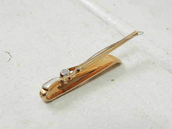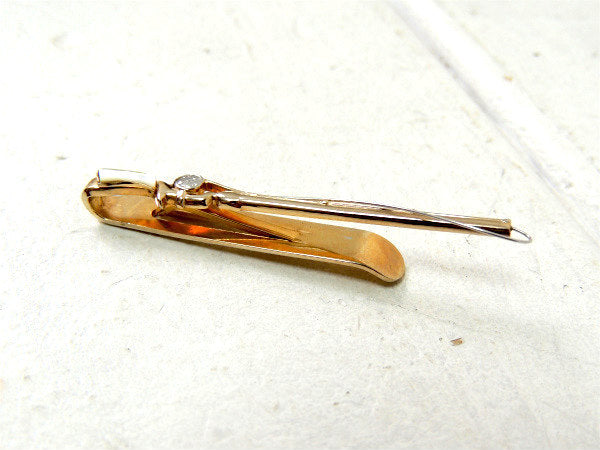アメリカ西海岸で見つけました・・釣り”ルアーフィッシング・ロッド・リール・ライン”モチーフ・お洒落なデザインのタイピン(タイバー)です。 SWANK社製 1950年~60年代頃 ※実際にアメリカで使われていたもの。 釣り(フライフィッシング)のデザインが とてもクールです。 もちろんお洒落なネクタイと合わせたり、釣り好きの特別な人へのプレゼントに1点物はいかがですか♪ ネクタイピンは指輪やネックレスと違って、ファッション性と機能性を兼ね備えたアクセサリー♪胸元を飾るものですからデザイン・フォルムはとっても大事になりますが、ネクタイの揺れや乱れを防ぐための お洒落なアイテムの一つ。 多少のスリキズ・ホコリ等ございます。 ヴィンテージネクタイは付属いたしません。 画像(写真)でのご判断を宜しくお願い致します。 ■ゴールドカラー ■size: 約 W5.5cm(横幅タイバー最大部)      ■コンディション : ★★★★☆ ■レターパックライト¥360対応可(追跡サービスあり・補償なし) ※ご注文の際、お手数ですがメッセージ欄に『レターパックライト希望』とご記入下さい。新たにお見積もりをメールにてお知らせさせていただきます。
