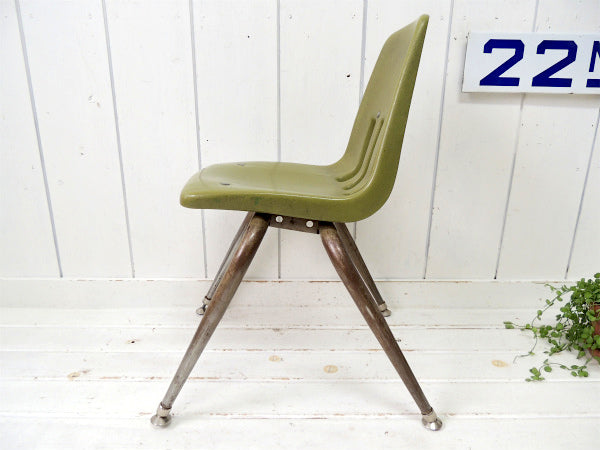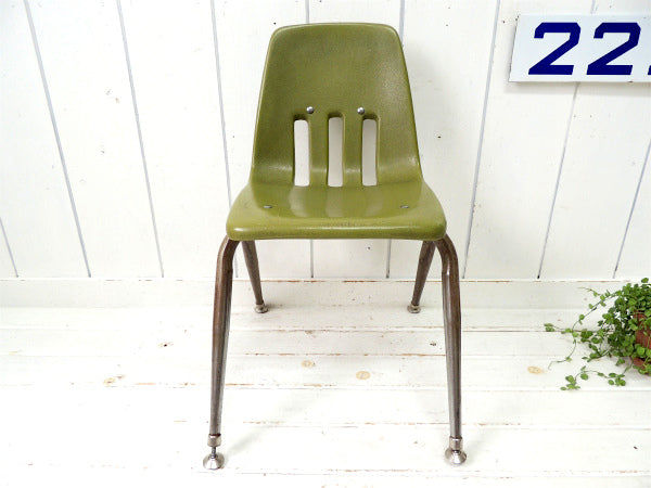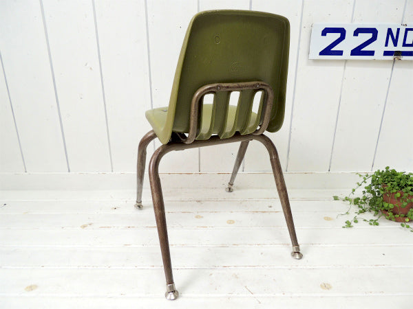 【VIRCO】ヴァルコ・オリーブグリーン色・ヴィンテージ・スクールチェア/子供イス USA