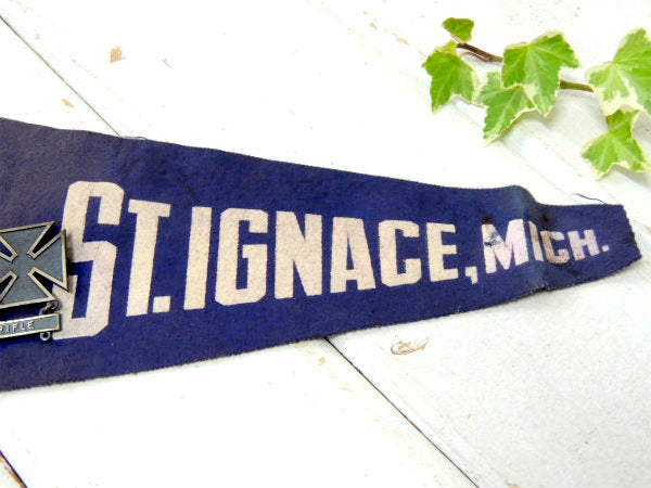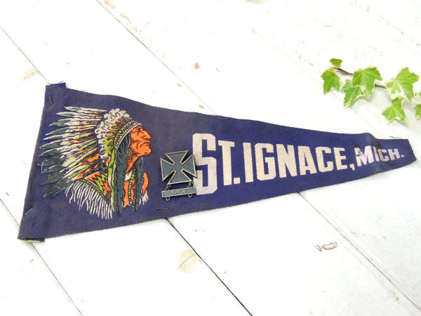 アメリカで見つけました・・1940~1950年代頃 "セントイグナス・ミシガン州"アメリカ合衆国のインディアン・ヴィンテージ・ペナントです。