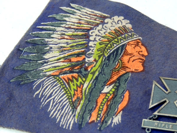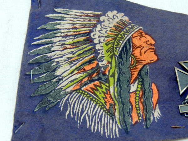1950's・インディアン・ミリタリー ヴィンテージ・ペナント・壁飾り・勲章バッジ付き