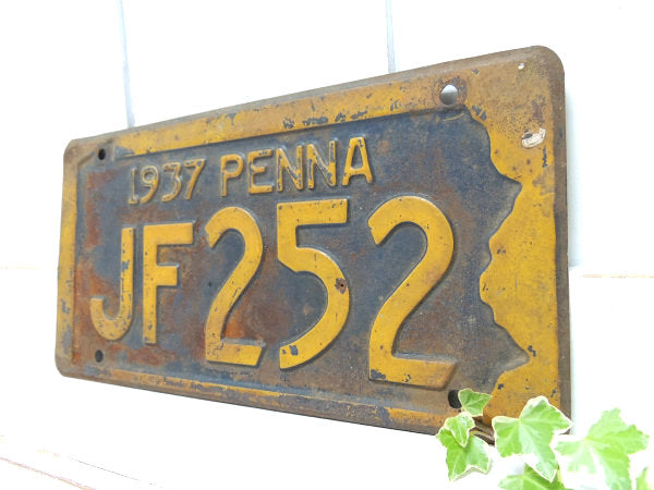 【ペンシルベニア州・1937年・PENNA】ビンテージ・ナンバープレート/ライセンスプレート
