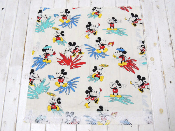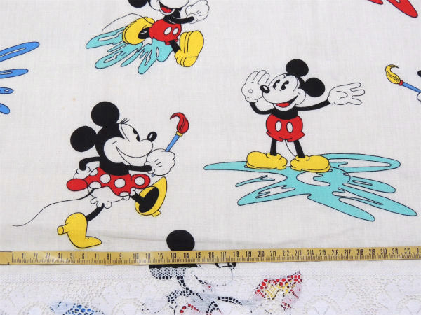 【レトロなミッキー&ミニー】激レア!パレット&ペイント柄・ヴィンテージ・カーテン/生地