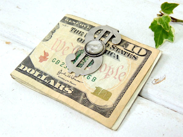アメリカで見つけました・・$モチーフ&鳩の装飾・ヴィンテージ・マネークリップです。