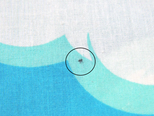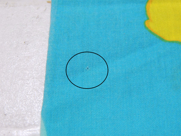 プリントの発色良く、生地もしっかりしておりますが、1箇所に小さなヨゴレ&小さな穴(画像参照)が見られます。