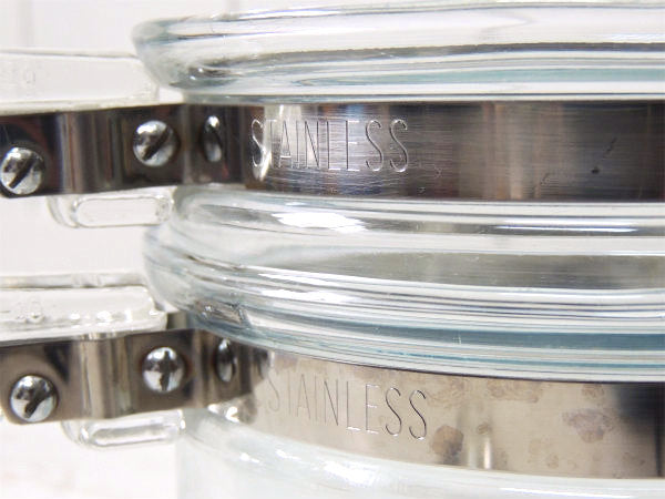 両方のボトムに【6283-U 1 1/2 QT PYREX®MADE IN U.S.A. B】とのエンボスが入っており、バンド部分に【6283 PYREX】&【STAINLESS】の刻印が入っております。